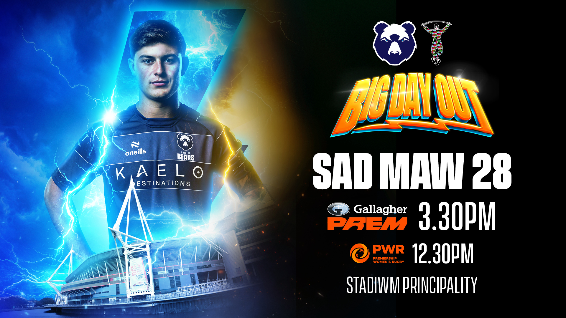 Daw Uwch Gynghrair Gallagher i brifddinas Cymru wrth i Ddynion a Merched Bristol Bears wynebu’r Harlequins yn yr ail ‘Big Day Out’ erioed yng nghartref eiconig rygbi Cymru yng Nghaerdydd. Yn ogystal â’r gêm rygbi ddwbl epig hon, bydd cyn-chwaraewr rhyngwladol Cymru a’r Llewod Prydeinig ac Iwerddon, Josh Navidi, yn mynd ar y decs i berfformio set DJ flaenllaw. Dyma ‘Big Day Out’ na fyddwch chi eisiau ei golli!