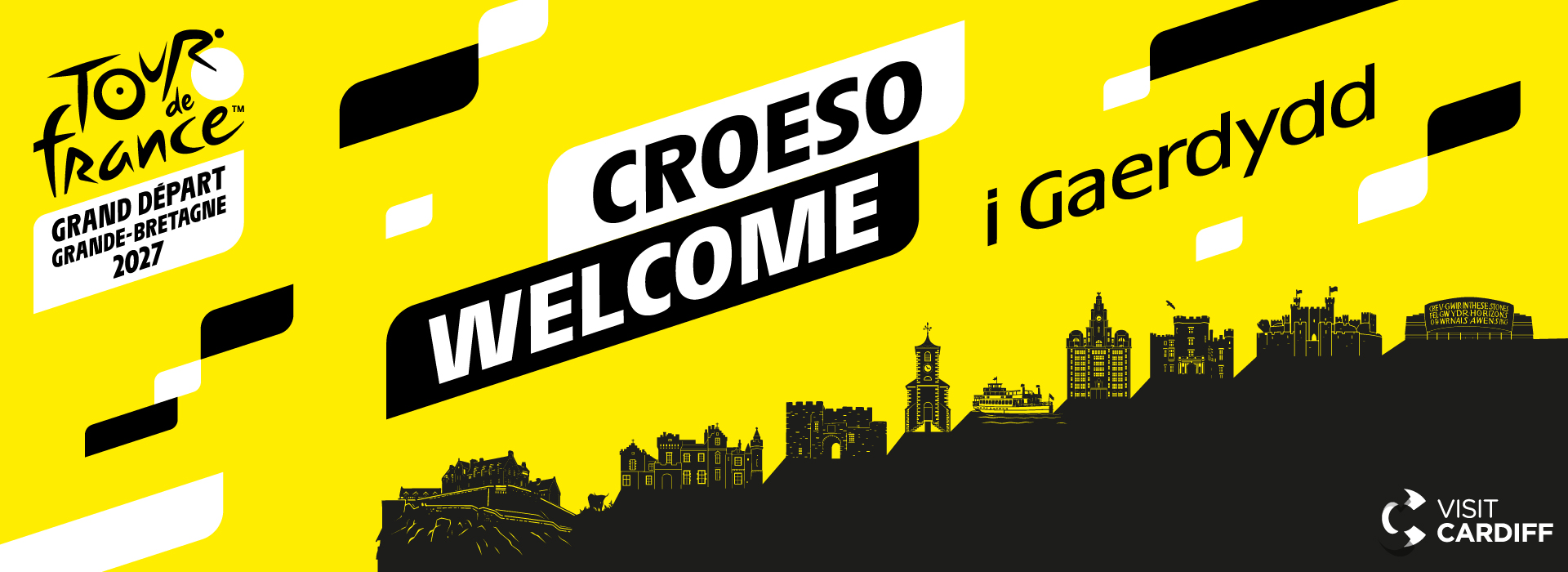 O gestyll Caeredin, Caerdydd, a Phowis, i’r Moot Hall yn Keswick, ar draws glannau eiconig Lerpwl a nenlin Llundain, roedd y pelydrau melyn cydgysylltiedig yn dathlu rôl pob rhanbarth wrth groesawu’r Grand Départ wrth uno’r DU mewn un foment genedlaethol o ddisgwyl cyn 2027.