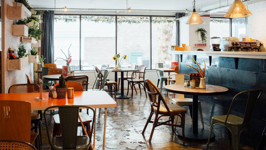 Os ydych chi’n taro i fewn am frecwast, brecinio neu ginio, rydyn ni’n gweini ystod eang o brydau blasus, a gellir gwneud pob un ohonynt yn ddi-glwten a/neu figan. Neu os ydych chi ond yn taro i mewn am goffi yna mae’n bosib y bydd un o’n cacennau ffres neu frownis yn mynd â’ch ffansi (mae hefyd opsiynau figan a di-g ar gael).