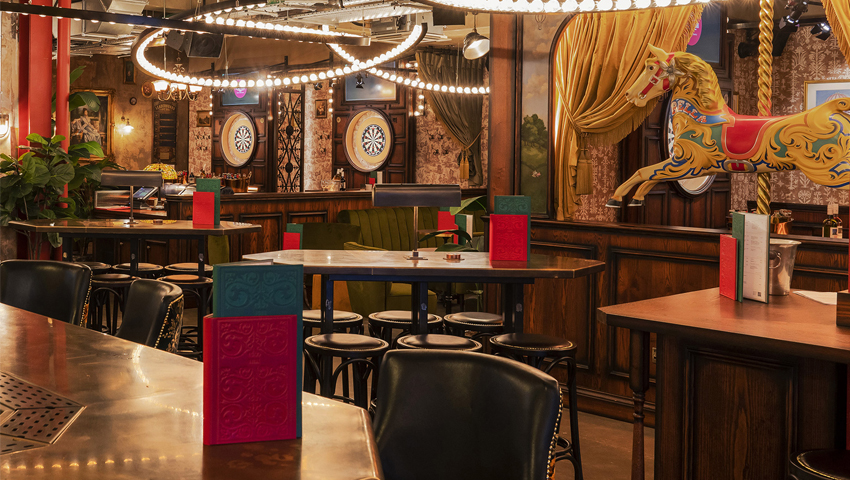 Mae tri llawr y lle yma yn llawn teyrngedau i’n dinas, goleuadau sy’n dawnsio’n gydamserol gyda’r gerddoriaeth, Bella ac Astrid ein ceffylau ffair, a bariau arbennig i yfed coctel neu dri. A nid dyna’r cyfan!
