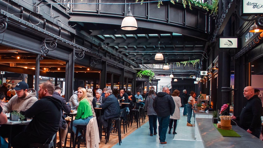 Gyda chymysgedd o’r hen a’r newydd, mae’r strwythur Fictoraidd trawiadol hwn yn cadw bron i bob un o’i nodweddion hanesyddol trawiadol, sy’n ei wneud y lle perffaith i archwilio, cyfarfod, bwyta, yfed a siopa. Mae’r Farchnad hefyd yn cynnwys gofod digwyddiadau unigryw ar y llawr mesanîn ar gyfer hyd at 250 o bobl, gwnewch yn siŵr eich bod yn cadw llygad am ein calendr digwyddiadau i weld beth sy’n digwydd trwy gydol y flwyddyn.