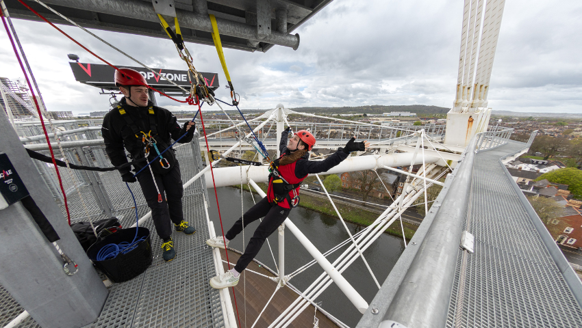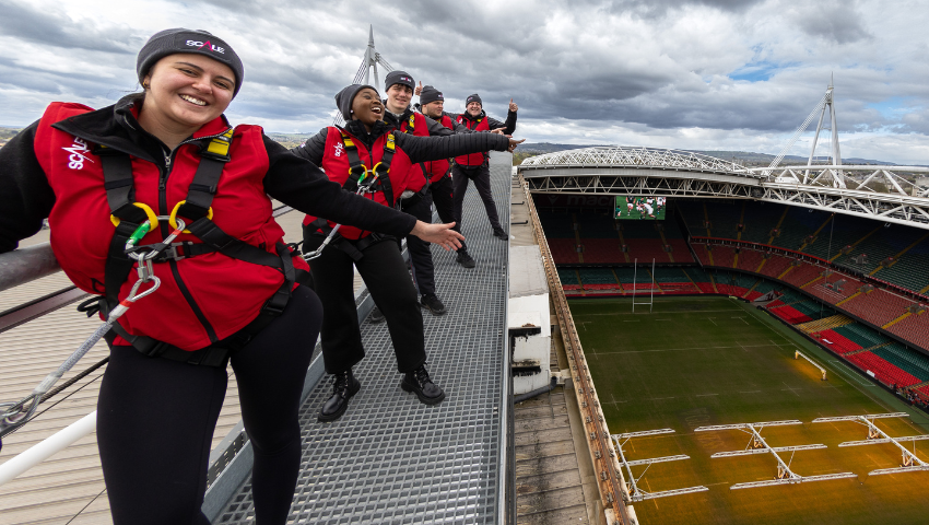 Paratowch i gael eich syfrdanu gan orwel anhygoel Caerdydd. Ewch i ymyl y to yn ystod Y DDRINGFA!