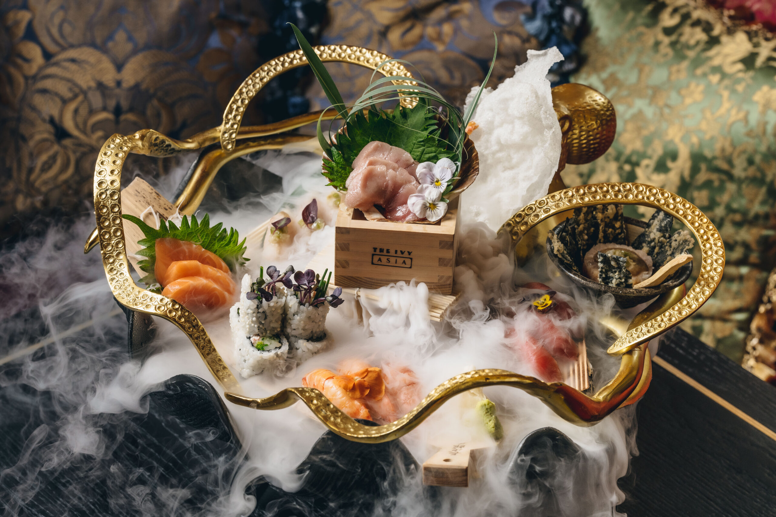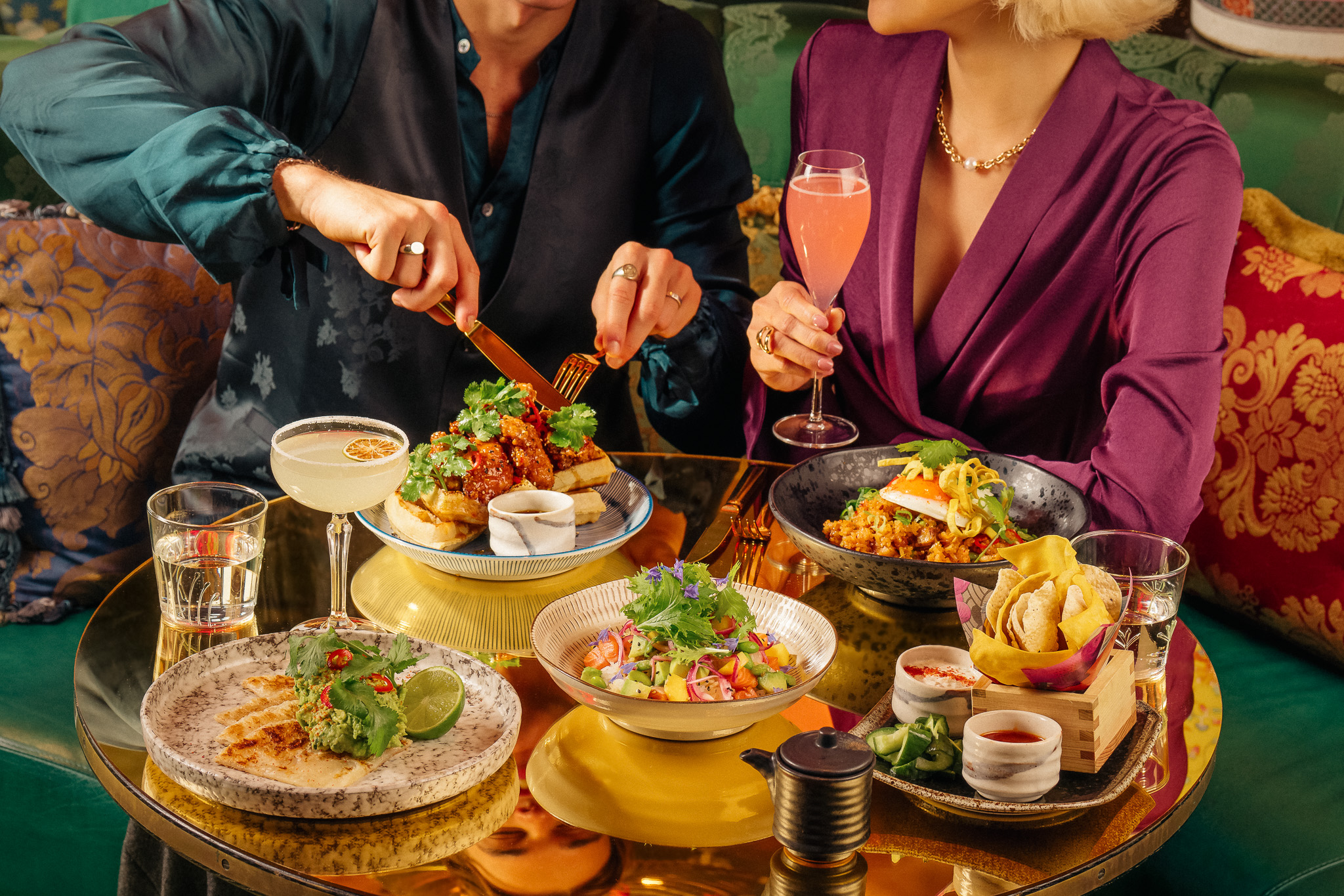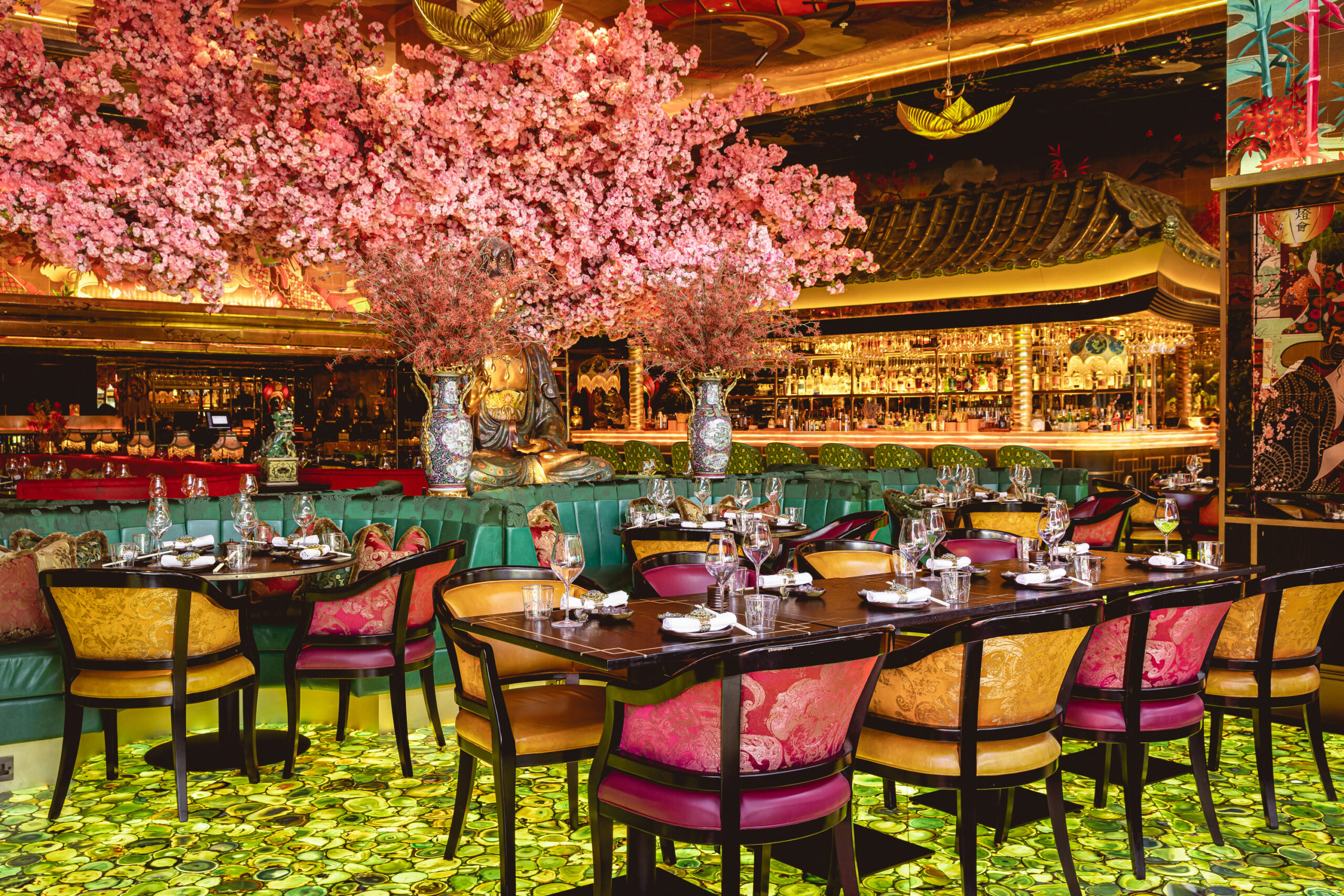 Wedi’i addurno gyda hynodion ac artistiaeth syfrdanol, mae’r bwytai hefyd yn gorlifo dau goed ceri mawr sy’n ymddangos yn berffaith yn erbyn y llawr onyx gwyrdd sy’n disgleirio. Yn yr un pryd, byddwch yn darganfod bwydlen mor ddiddorol â’r addurno – mae clasuron pan-Asiaidd ochr yn ochr â chreadigaethau newydd cyffrous a bwydydd planhigol sy’n ysbrydoli pob blas.