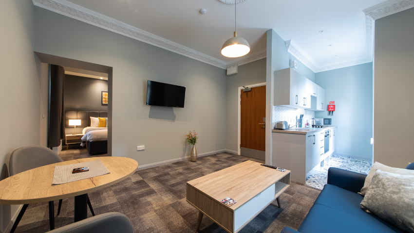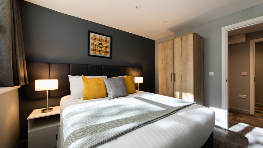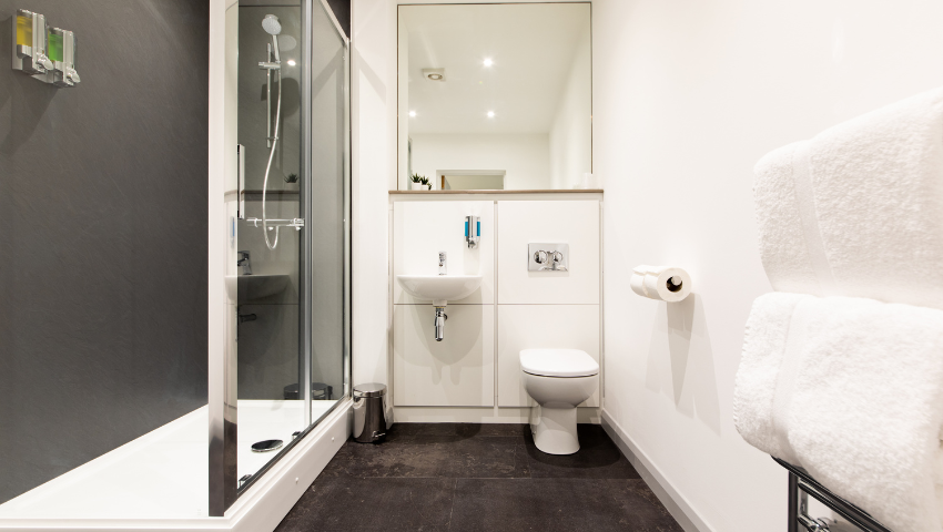 Mae pob fflat yn cynnig cegin, lolfa, ystafell wely ac ystafell ymolchi â’r cyfarpar llawn, gyda’r fflatiau 2 ystafell wely yn cynnwys 2 ystafell ymolchi. Mae stiwdios yn cynnig man agored gyda chegin, ardal lolfa a bwyta ac ystafell gawod ensuite.