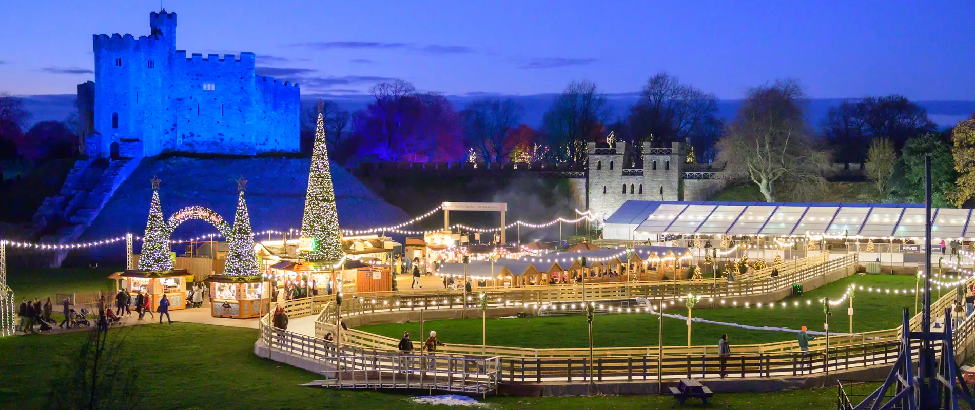 Gan ddychwelyd i diroedd prydferth Castell Caerdydd, mae’r Llawr Sglefrio Iâ a’r Llwybr Iâ, wedi’u gosod yn erbyn cefndir y Gorthwr Normanaidd. Mae’r llawr iâ dan do, gyda’r Llwybr Iâ golygfaol, yn ffordd wych o gychwyn yr awyrgylch Nadoligaidd hwnnw. Mae sesiynau hygyrch ar gael ar ddydd Iau. Mae’r llawr i ddechreuwyr yn darparu amgylchedd sglefrio mwy hamddenol i’w fwynhau, lle croesawgar i ddechreuwyr a’r rhai sy’n chwilio am brofiad mwy hamddenol.