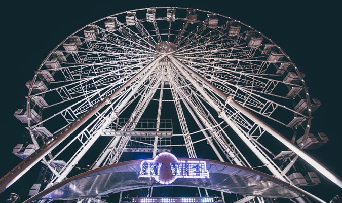 Nid yw Gŵyl Hud y Gaeaf Caerdydd yn gyflawn heb ei ffair hwyl enwog i deuluoedd. Fel arfer, gallwch fwynhau’r olygfa orau o’r ddinas o’r Olwyn Fawr; yn ogystal â hynny, bydd yna ystod wych o atyniadau a gemau eraill sy’n addas i bob oed.